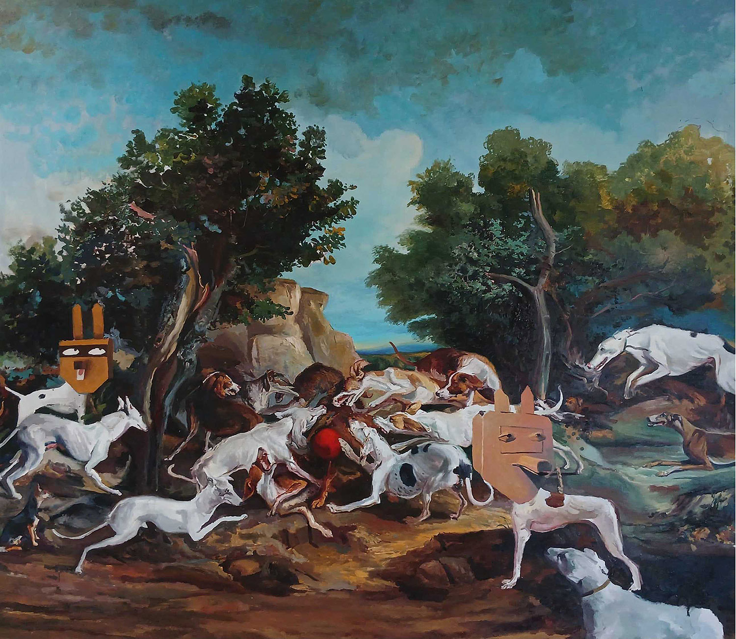 La exposición, comisariada por Begoña Torres, dará a conocer una serie de lienzos en gran formato de Íñigo Navarro en los que, siguiendo la inspiración de Goya, lo clásico se da la mano con lo inesperado: carreras al atardecer de galgos gigantes, disputas banales por balones rojos y vuelos sin motor sobre un agua cristalina. También las máscaras abundan en su obra, mezclando lo lúdico con lo inquietante. En palabras de Navarro, “las máscaras me atraen porque son un elemento de disfraz, algo divertido, pero también porque, al eliminar el retrato, la figura se convierte en un universal”. El resultado de todo ello son escenas que remiten a la nueva figuración europea, pero ejecutadas siguiendo los preceptos de la escuela española.