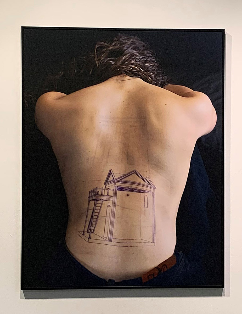 El tatuaje sobre la piel presenta una connotación respecto al carácter indeleble de lo tatuado, que marca a esa persona de por vida, en este caso a esas mujeres, “y la marca que llevan es la de la casa”, apunta. La casa aparece como representación del espacio doméstico, un ámbito al que la mujer históricamente ha sido relegada y que la artista trata de evidenciar para colocar la atención en “la reflexión sobre los papeles que socialmente seguimos desempeñando hoy”, añade.